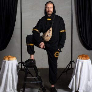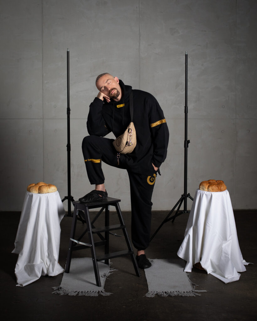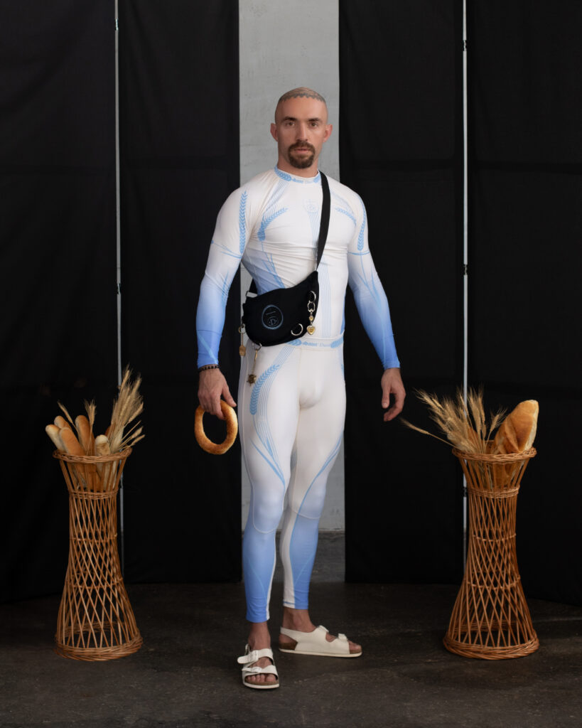 As he gets to the gate of the monastery, he notices that the lumberjack was right and the whole monastery is made of bread, ornate and refined. The doors are crackers, the mouldings are brioche, the gargoyles are sourdough. He knocks at the knackerbrod doors, and a monk’s head pops out. Before Saint Daniel can say anything, the monk notices the angel’s seal that Daniel is wearing, and grabs him by the arm, telling him : “We have been waiting for you”. Before he knows it, the monk drags him to the kitchen, where the oven lies dark and cold, and a few monks watch him arrive. They all wear the same outfit, a shirt with a hood and trousers, all ornately decorated with the blue bread/braids. They seem frustrated and distressed, but also relieved to see him.